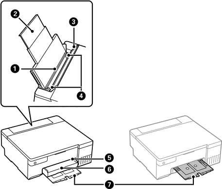 支撐退出的紙張。將其手動拉出並推回以存放。