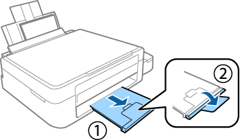 Kontroller at På/av-lampen lyser hele tiden. Åpne materdekselet, trekk ut papirstøtten, og vipp den deretter bakover.