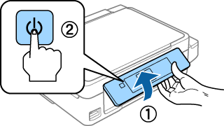 2 Ligue a impressora e levante o painel de controlo.