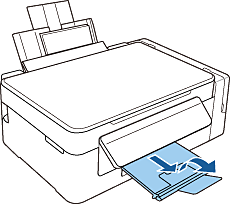 1 यह सुनिश्चित करें कि पावर लाइट चालू रहता है। फ़ीडर गार्ड खोलें, पेपर सपोर्ट का विस्तार करें और फ़िर उसे पीछे की ओर झुकाएँ।