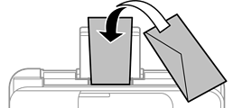 Masukkan tepi amplop yang pendek terlebih dahulu di bagian tengah penopang kertas dengan penutup menghadap ke bawah.