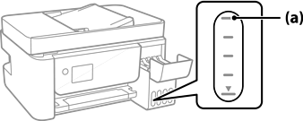 Sprawdź górną linię (a) w zbiorniku z tuszem.
