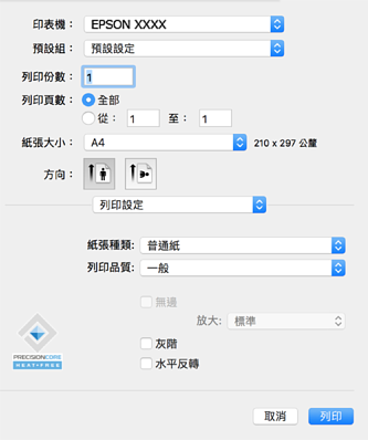 從[檔案]功能表選取[列印]或其他指令,存取列印對話方塊。