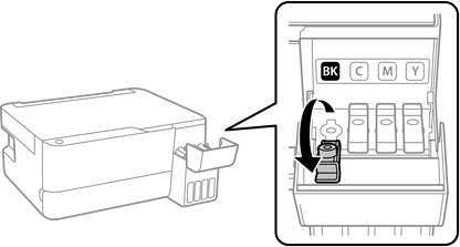 Als u klaar bent met het bijvullen van de inkt, verwijdert u de inktfles en sluit u de inkttankdop zorgvuldig.