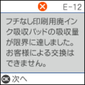 以下の画面が表示されたときは、お客様による交換はできません。エプソンの修理窓口に交換をご依頼ください。