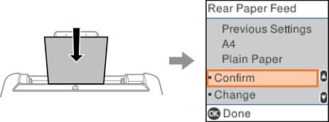 Če se prikazana velikost in vrsta papirja razlikujeta od naloženega papirja, spremenite nastavitve velikosti in vrste papirja ter jih potrdite.