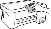 Če so komponente in ohišje umazani ali prašni, izklopite tiskalnik in ga očistite z mehko, čisto krpo, ki ste jo navlažili z vodo. Če umazanije ne morete odstraniti, vlažni krpi dodajte majhno količino blagega detergenta.