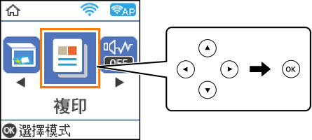 若要選取項目,請使用 鍵,然後按下 OK 鍵。
