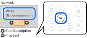 5 Select the SSID for the wireless router from printer’s control panel, and then press the OK button.