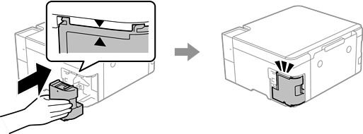 Duw de nieuwe onderhoudscassette helemaal in de printer. Zorg ervoor dat u de cassette in de juist richting terugplaatst.