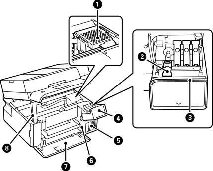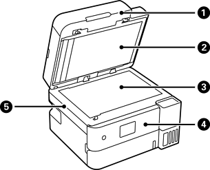 Digitaliza os originais colocados. Abra-a para retirar papel encravado. Normalmente, esta unidade deve manter-se fechada. |