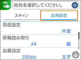 [スキャン]タブで保存形式などを設定します。