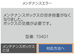 以下の画面が表示されたときは、お客様による交換はできません。エプソンの修理窓口に交換をご依頼ください。