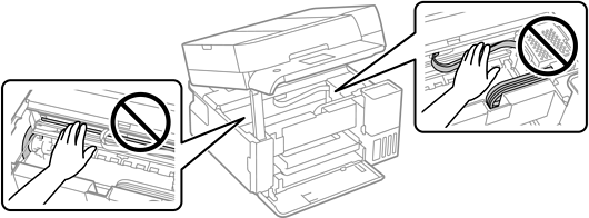 Nekādā gadījumā nelietojiet spirtu vai krāsu šķīdinātāju printera detaļu un ietvara tīrīšanai. Šīs ķimikālijas var sabojāt gan detaļas, gan ietvaru.