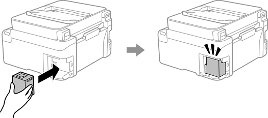 Inserte totalmente la nueva caja de mantenimiento en la impresora. Asegúrese de que introduce la caja en la dirección correcta.