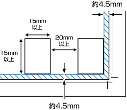 1. 原稿台に写真をセットします。原稿台の端から約4.5mm離し、それぞれの写真を20mm以上離して置きます。