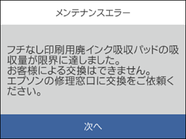 • 以下の画面が表示されたときは、お客様による交換はできません。エプソンの修理窓口に交換をご依頼ください。