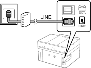 Поврзете телефонски кабел од DSL-модем или адаптер со ISDN-приклучок на портата LINE на задната страна на печатачот. Видете во документацијата на модемот или адаптерот за повеќе информации.