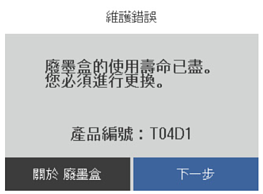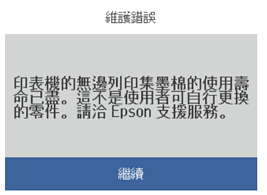 顯示下列畫面時,使用者不可更換該部分。請洽詢 Epson 支援服務。