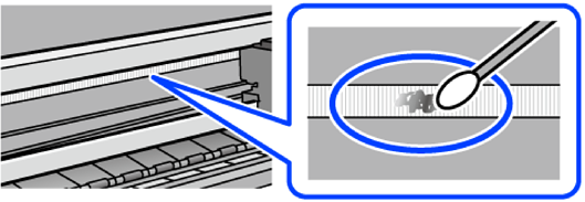 في حال عدم تحسن المطبوعات بعد محاذاة رأس الطباعة أو تنظيف مسار الورق، فقد يكون الفيلم شبه الشفاف الموجود داخل الطابعة ملطخًا.