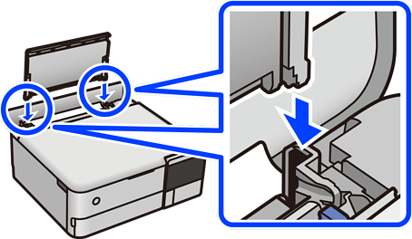 أدخل الأجزاء البارزة من دعامة الورق لوحدة تغذية الورق الخلفية عموديًا في الفتحات الموجودة على كل جانب.