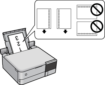 قم بتحميل ورقة واحدة من النوع العادي بالحجم المحدد مع جعل فتحات التجليد تجاه اليسار أو اليمين. اضبط وضع الطباعة الخاص بملفك لتجنب الطباعة فوق الفتحات.