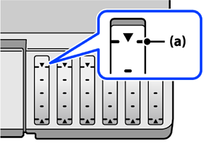 6. Verificare la linea superiore (a) nel serbatoio dell’inchiostro.