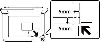 Posizionare un documento di identità a una distanza di 5 mm dal contrassegno dell’angolo sul vetro dello scanner.