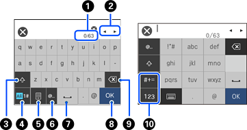 Durante la configurazione delle impostazioni di rete e l’esecuzione di altre operazioni, è possibile immettere caratteri e simboli utilizzando la tastiera a schermo.