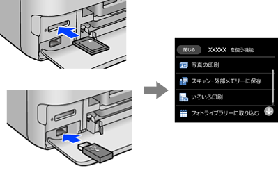 メモリーカードやUSB接続機器などの外部メモリーをセットする