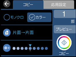 [コピー]タブを選択して、[モノクロ]または[カラー]を選択します。