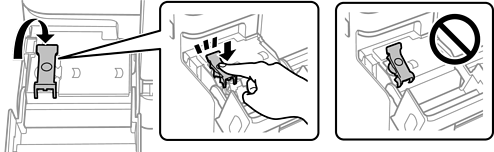 Jos muste ei ala valua säiliöön, irrota mustepullo ja aseta se uudelleen. Älä kuitenkaan aseta mustepulloa laitteeseen, kun muste on saavuttanut yläviivan; muuten mustetta voi vuotaa.