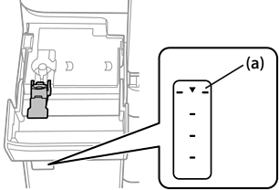 Проверьте верхнюю линию (a) на контейнере для чернил.
