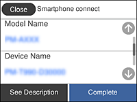 На экране подключения Wi-Fi интеллектуального устройства выберите имя сети (SSID), отображаемое на панели управления принтера, затем введите пароль.