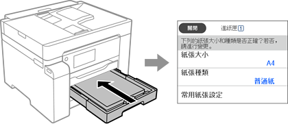 如果您在插入進紙匣時顯示的畫面上登錄紙張大小,印表機會在登錄的資訊與列印設定不同時告知您。這可確保您不會由於使用不符合紙張類型的設定列印於錯誤紙張大小上或使用不良列印品質進行列印,從而防止紙張和墨水浪費。