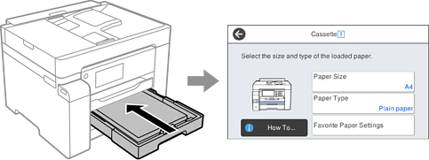 Anda juga dapat menampilkan layar pengaturan ukuran kertas dan jenis kertas dengan memilih Pengaturan > Pengaturan Umum > Pengaturan Printer > Pengaturan Sumber Kertas > Pengaturan Kertas.