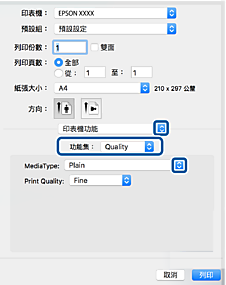 > 列印 > 列印文件 > 從 PostScript 印表機驅動程式列印 (Mac OS)