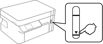 Ако резервоарът с мастило не е пълен до долната линия, допълнете го до горната линия на резервоара.Ако продължите да използвате принтера, когато нивото на мастилото е под долната линия на резервоара, може да повредите принтера.