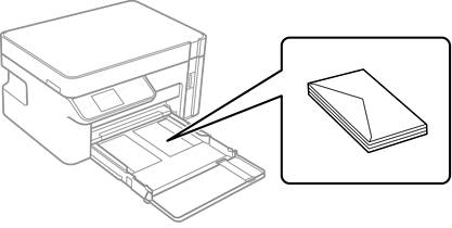 Dengan sirip menghadap ke atas, masukkan amplop sampai menyentuh bagian belakang kaset kertas.