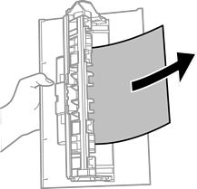 Keluarkan kertas macet dari penutup belakang.
