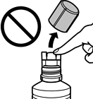 Jika tinta tidak juga mengalir ke dalam tangki, lepaskan botol tinta dan masukkan lagi. Namun, jangan memasukkan kembali botol tinta setelah tinta mencapai garis batas atas karena dapat menumpahkan tinta.