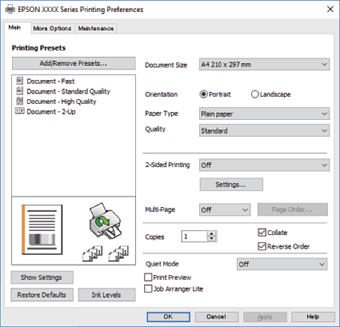 各項目の詳細は、プリンタードライバーのメニュー説明をご覧ください。