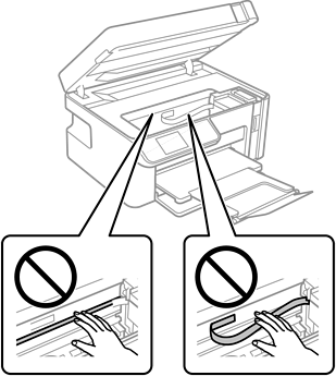プリンター内部のケーブル(白色)や半透明フィルムには触らないでください。動作不良の原因となるおそれがあります。