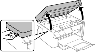 Откройте модуль сканера, удерживая его крышку закрытой.