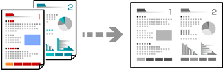 Копирование двух односторонних оригиналов на один лист бумаги в макете «2 на листе».