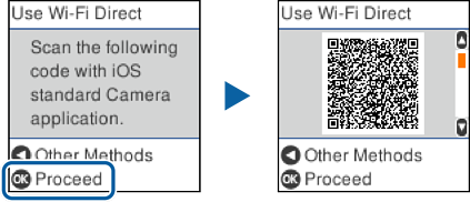 Na zariadení iPhone, iPad alebo iPod touch spustite štandardnú aplikáciu Fotoaparát a potom naskenujte kód QR zobrazený na ovládacom paneli tlačiarne v režime FOTOGRAFIA.