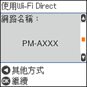 印表機 Wi-Fi Direct 的 網路名稱 和 密碼 隨即顯示。