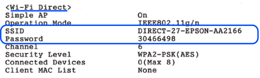 If you release the button within 5 seconds, a network connection report is printed. Note that the SSID and Password for Wi-Fi Direct (Simple AP) are not printed on this report.