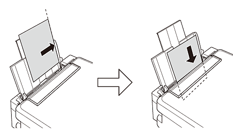 印刷する面を手前にして、背面トレイの右端に沿って縦長にセットします。