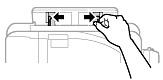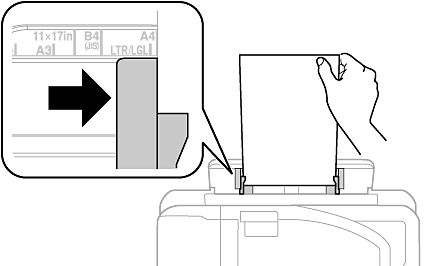 印刷する面を手前にして持ち、手差し給紙の中央で用紙ガイドを用紙側面に合わせます。